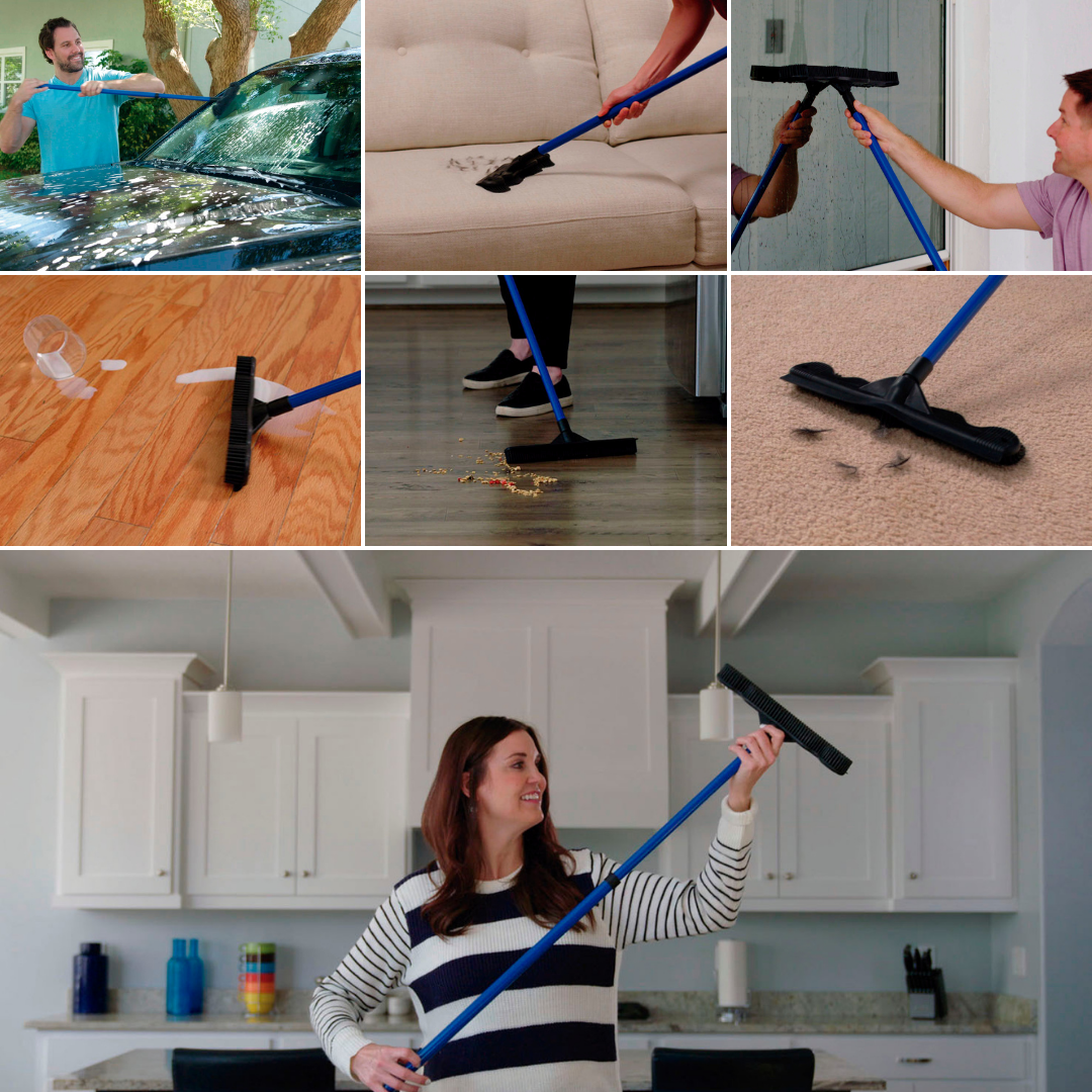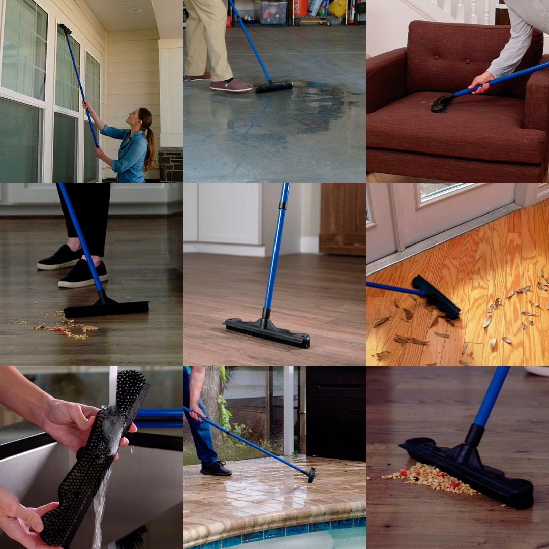 Escoba multiusos de goma natural con rasqueta integrada y mango telescópico